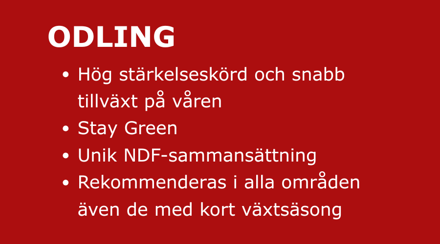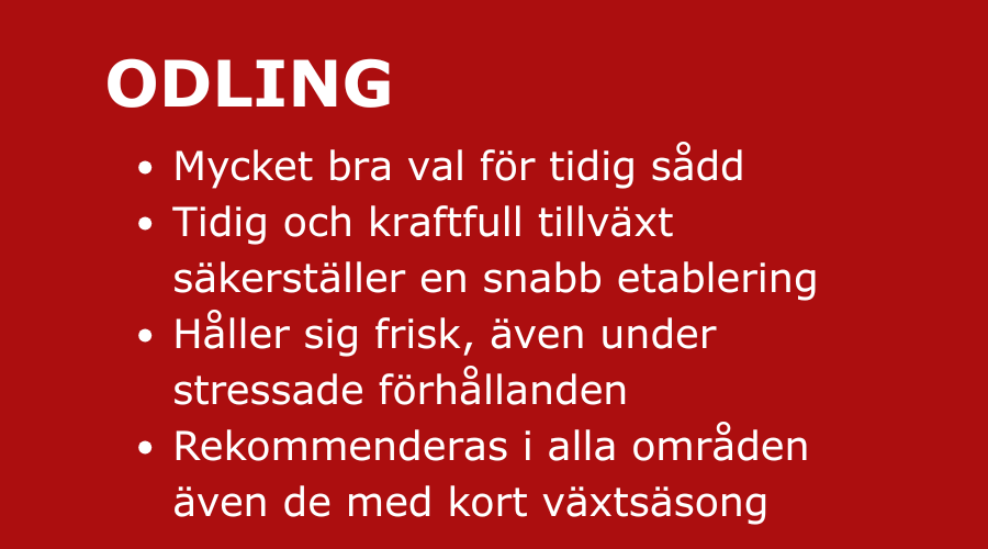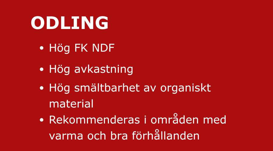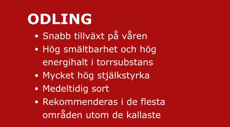Lämplig för områden där en tidig skörd önskas utan att kompromissa med fodervärdet.